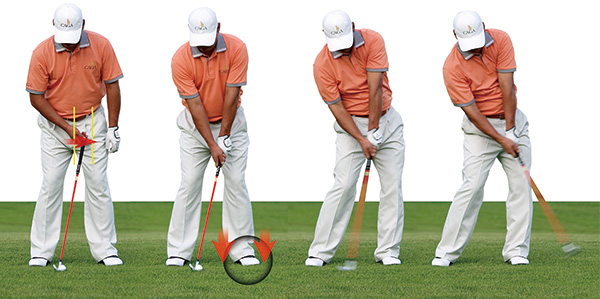 펀치샷의 스탠스는 어느 정도 좁게 서야 합니다. 발을 어깨 너비로 벌리고 약간의 전방으로 무게를 싣는 것이 좋습니다. 볼 위치는 일반 스윙보다 후방에 위치시켜야 합니다.