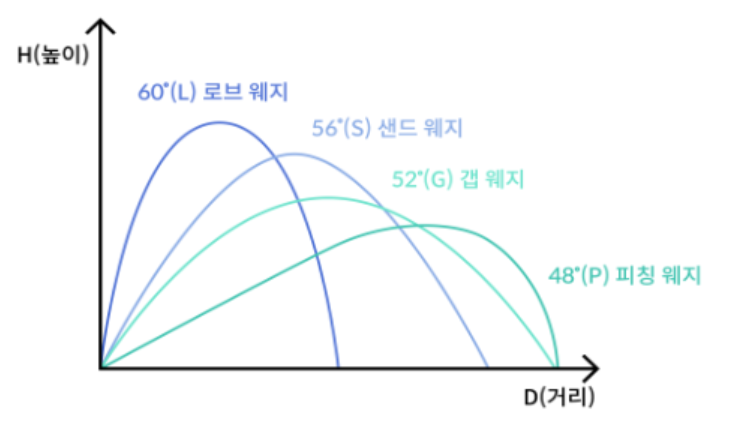포대그린, 장애물등을 넘어야 하는경우 쉽게 말하면 근거리에서 높은 탄도의 샷을 필요하는 경우에 쉽게 공을 띄우기위해 필요한 골프채라고 할 수 있습니다. 탄도가 높고 백스핀이 많이 걸리기 때문에 낙하점에서 멀지 않게 공이 멈추는 효과가 있습니다. 보통 60~64도의 로프트 각도로 구성됩니다 .